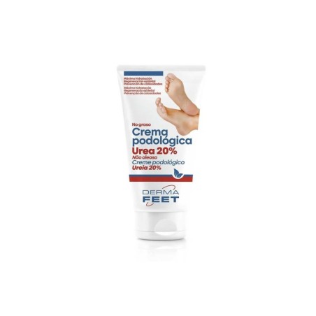 Dermafeet crema podológica urea 20% es una crema hidratante y exfoliante diseñada para el cuidado de pies secos, con callosidades, grietas y durezas. No grasa y sin parabenos. Hidratación eficaz y prolongada: acción urea 20%. Cuidado y prevención de callosidades: efecto queratolítico, urea 20%. Acción calmante: aloe vera. Regeneración epitelial doble efecto: rosa mosqueta y pantenol