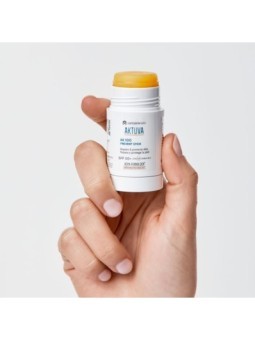 Aktuva ak100 prevent stick es una solución de fotoprotección muy alta diseñada específicamente para pieles sometidas a una exposición solar continuada y entornos urbanos con polución. Este innovador stick no solo actúa como un escudo frente a la radiación uv, sino que ejerce una potente acción reparadora de la función barrera, ayudando a recuperar la integridad de la piel dañada por factores externos. Su versatilidad permite una aplicación precisa en el rostro, los labios e incluso en el cuero cabelludo, donde su textura ligera garantiza un confort total.