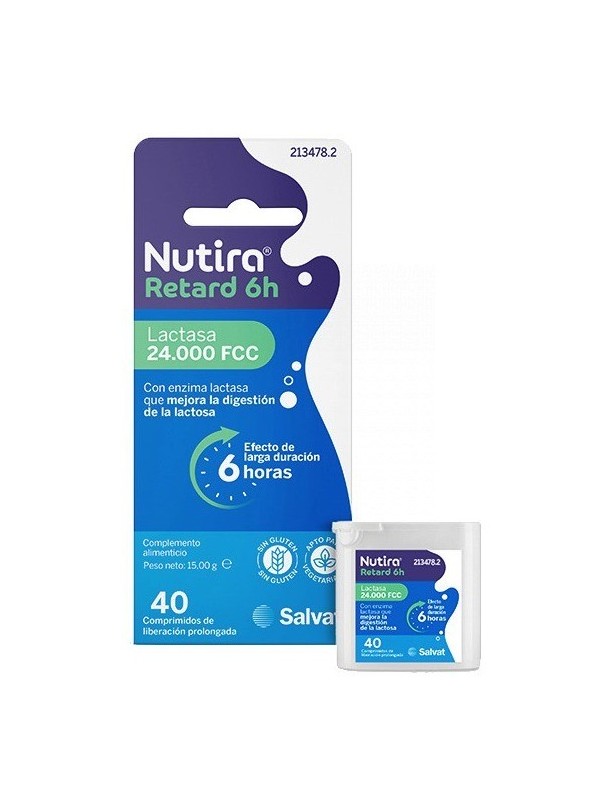 Nutira Retard 6h Lactasa 24.000 FCC es un suplemento digestivo especialmente formulado para ayudar a las personas con intolerancia a la lactosa a digerir de manera más efectiva los productos lácteos. Sus comprimidos de liberación prolongada ofrecen hasta 6 horas de alivio, sin gluten y apto para vegetarianos.